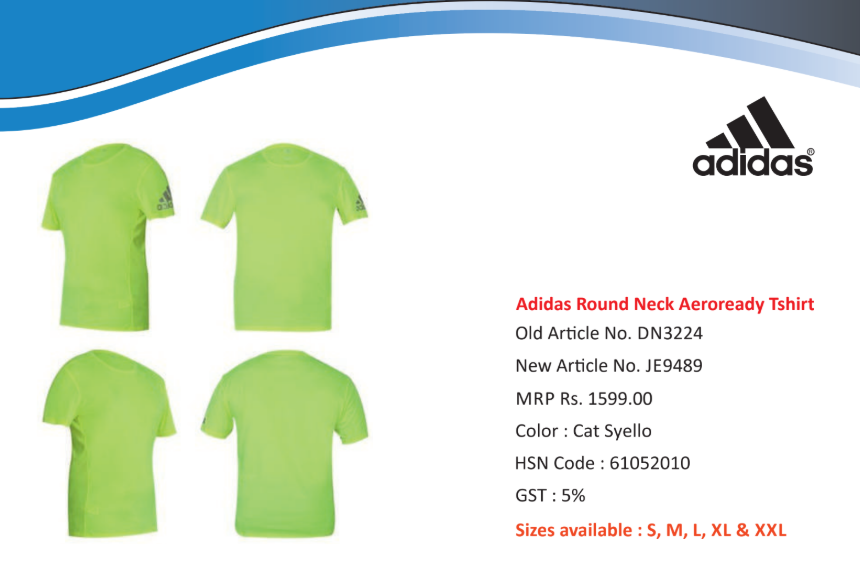Adidas Round Neck Aeroready Tshirt CAT SYELLO