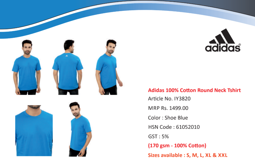Adidas 100% Co on Round Neck Tshirt SHOE BLUE