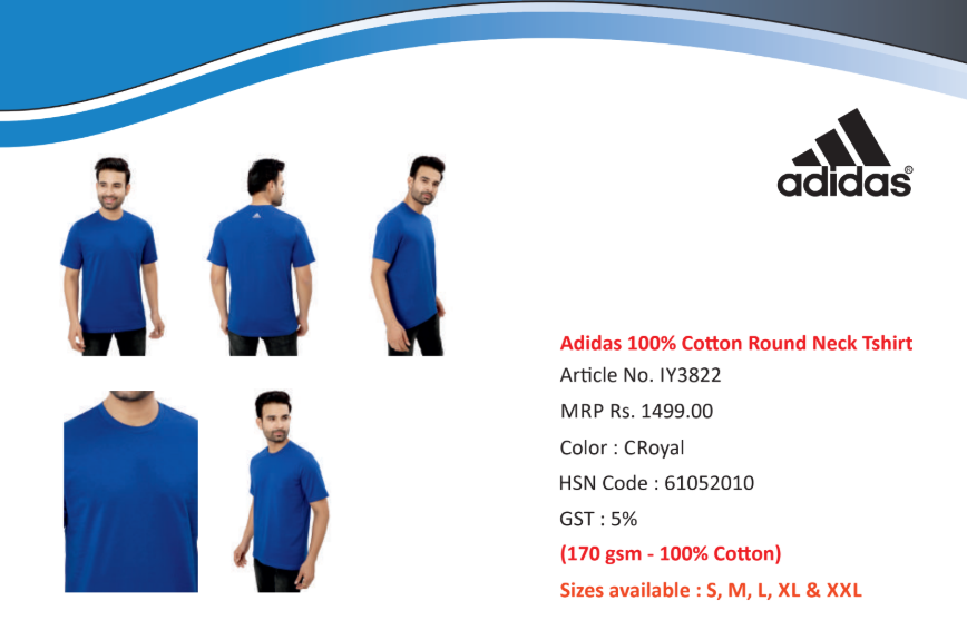 Adidas 100% Co on Round Neck Tshirt C ROYAL