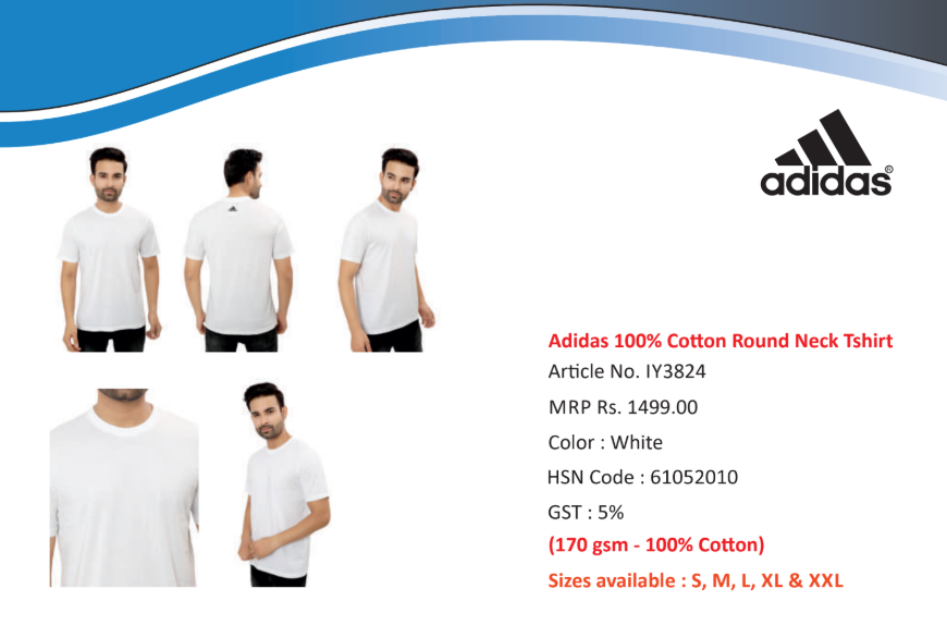 Adidas 100% Co on Round Neck Tshirt WHITE
