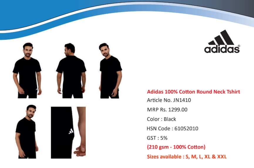 Adidas 100% Co on Round Neck Tshirt BLACK