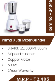 Prima 3 Jar Mixer Grinder