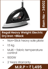 Regal Heavy Weight Electric Dry Iron - Black