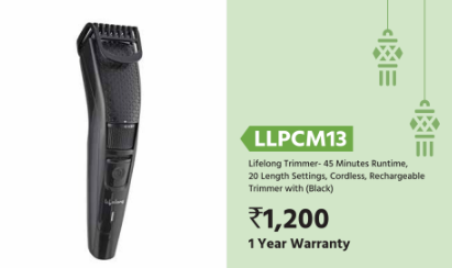 LLPCM13 LIFELONG TRIMMER -45 MINUTES RUNTIME, 20 LENGTH SETTINGS, CORDLESS RECHARGEABLE TRIMMER