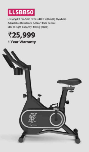 LLSBB50 LIFELONG FIT PRO SPIN FITNESS BIKE WITH 6KG FLYWHEEL ADJUSTAABLE RESISTANCE & HEARTRATE SENSOR CAPACITY 100KG
