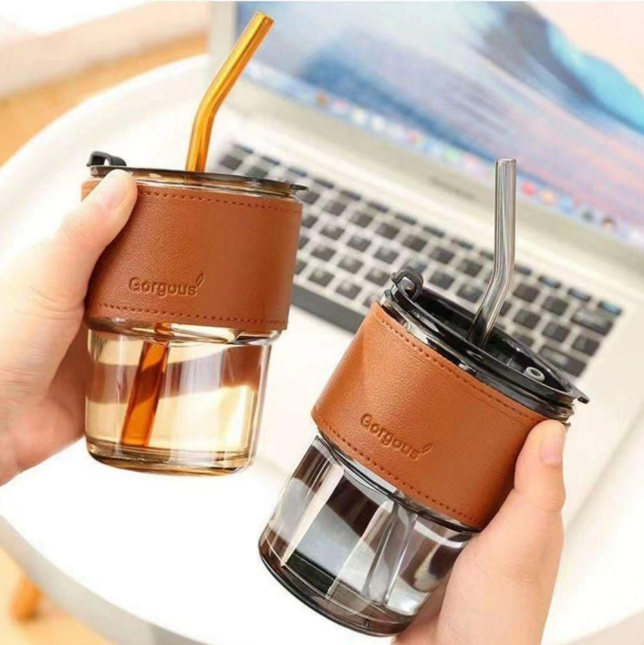 AquaBot Glass Mug With Straw